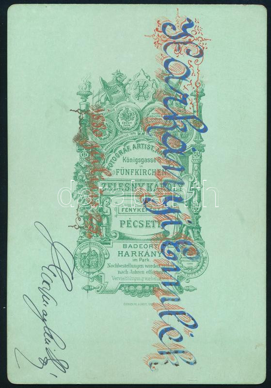 cca 1885 Családi portré, harkányi emlék, keményhátú fotó Zelesny Károl...