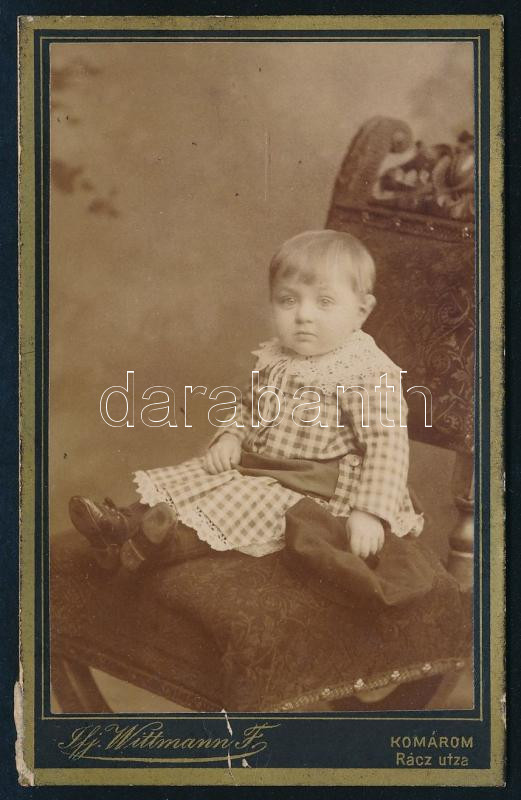 cca 1885 Kisgyerek portréja, keményhátú fotó Ifj. Wittmann komáromi mű...