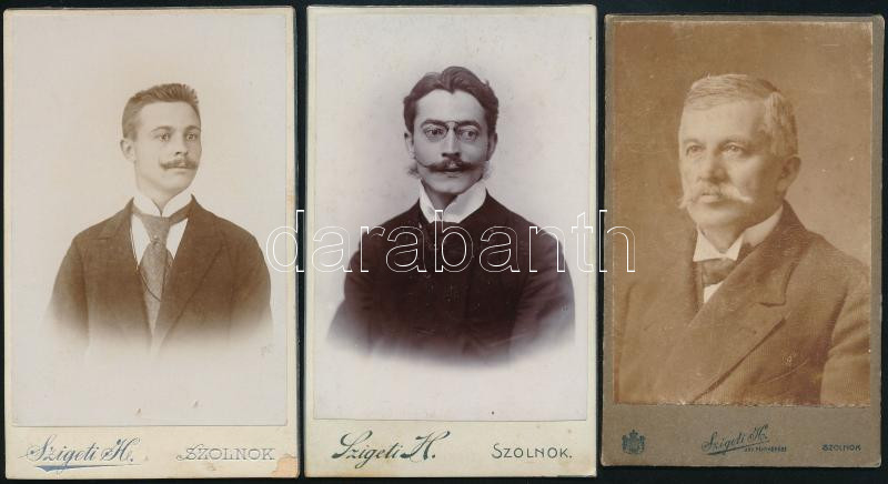 cca 1890-1910 3 db keményhátú férfiportré szolnoki műtermekből, 10,5×6,5 cm