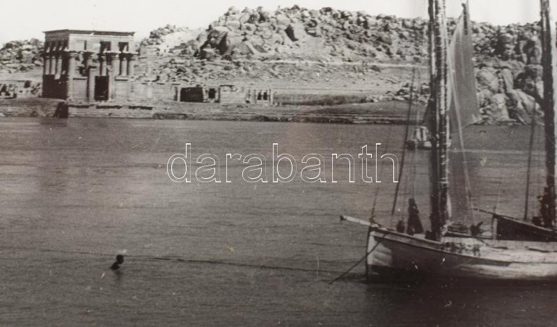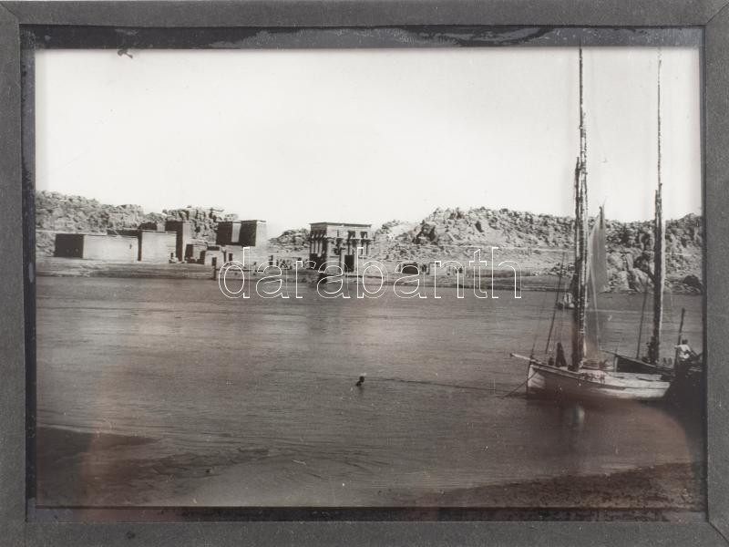 cca 1900 Egyiptom, Philai, Ízisz temploma és a Traianus kioszk, üvegpo...