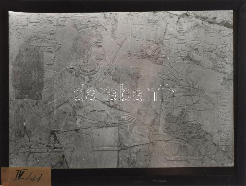 cca 1900 Egyiptom, Ramosze és Merit-Ptah (Meritptah) domborműve, üvegpozitív, 9x12 cm