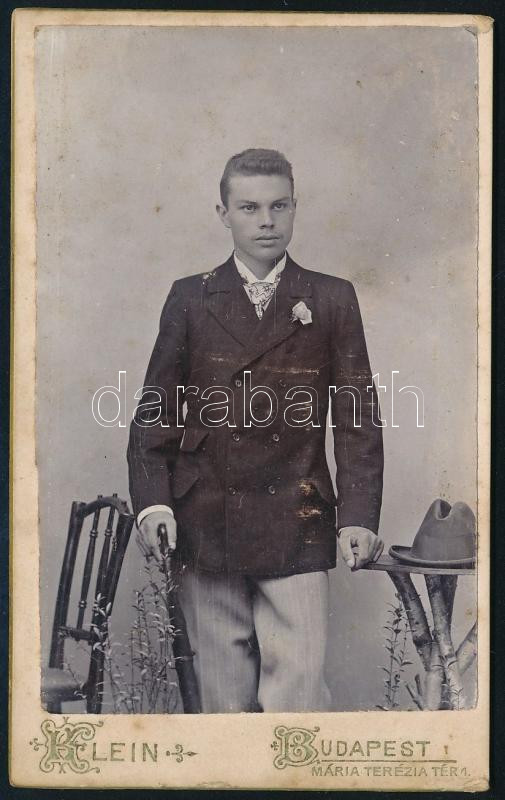 cca 1900 Elegáns fiatalember portréja, vizitkártya Klein R. budapesti ...