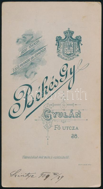 cca 1900 Előkelő hölgy portréja, kabinetfotó Békés Gyula gyulai műterm...