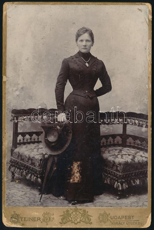 cca 1900 Női portré, keményhátú fotó Steiner budapesti műterméből, hib...