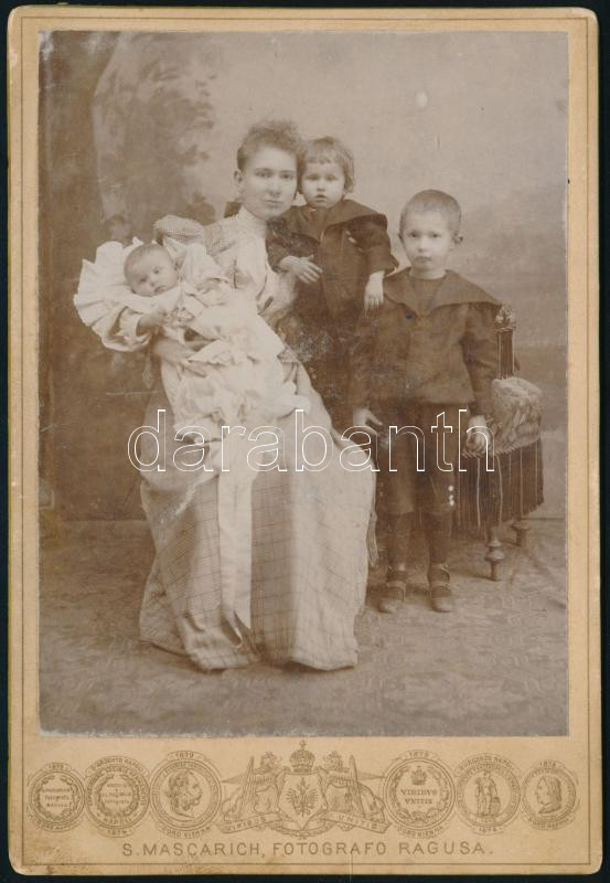 cca 1900 dinnyebereki Bozó Pál m. kir. vezérőrnagy (1865-1944) felesége és gyermekei. Silvino Mascarich műterméből, 17x11,5 cm