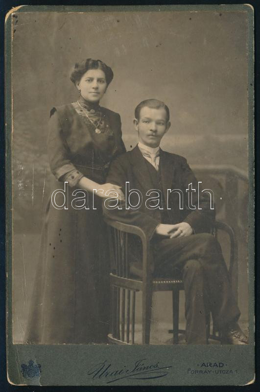 cca 1915 Házaspár portréja, keményhátú fotó Urai János aradi műtermébő...
