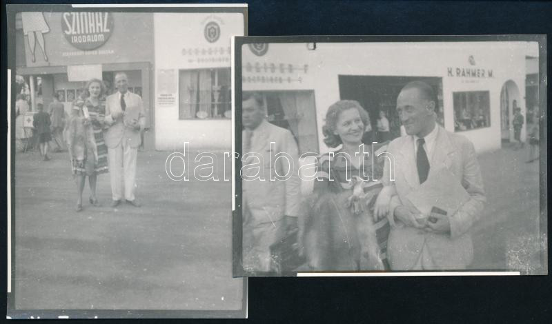 cca 1940 Petrás Margit színésznő egy beazonosítandó férfi társaságában, 2 db jelzés nélküli fotó, későbbi előhívás, 9x12 cm