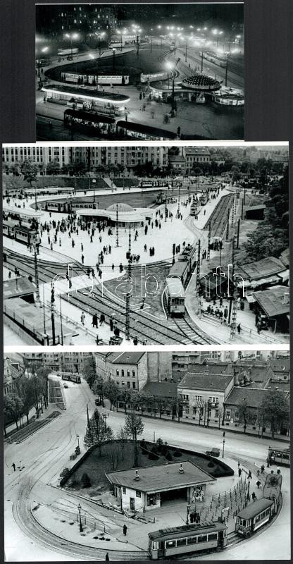 cca 1940 előtti felvételek a Széll Kálmán térről (éjjel és nappal), 3 db modern nagyítás, jelzés nélkül, 15x21 cm és 10x15 cm
