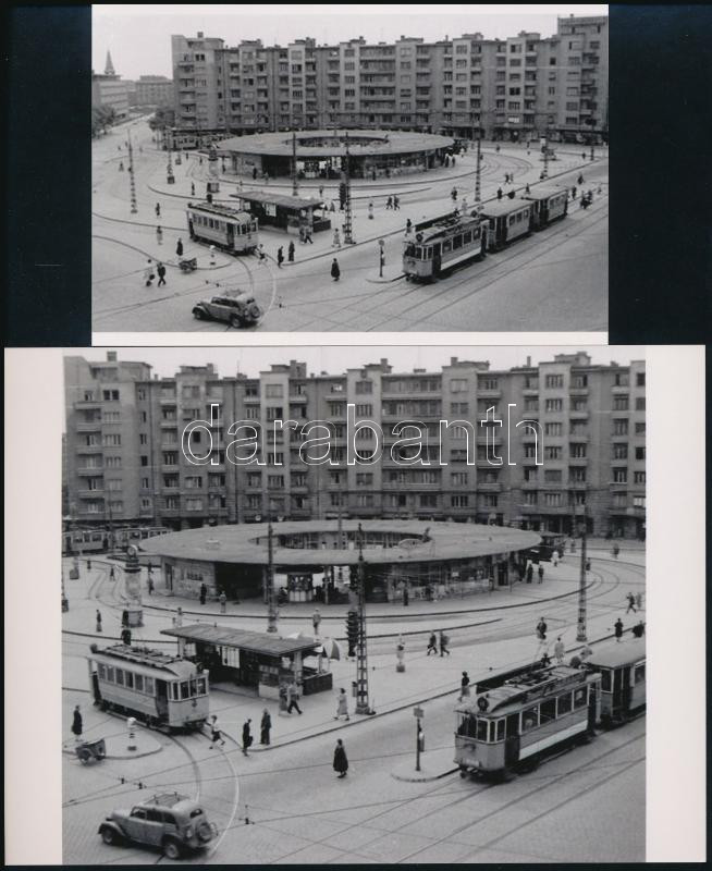 Description: cca 1952 Budapest, Móricz Zsigmond körtér, ugyanaz a felvétel kétféle képkivágásban és képméretben, 2 db modern nagyítás, jelzés nélkül, 15x21 cm és 10x15 cm