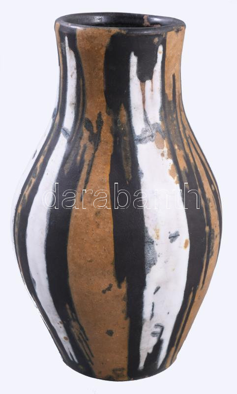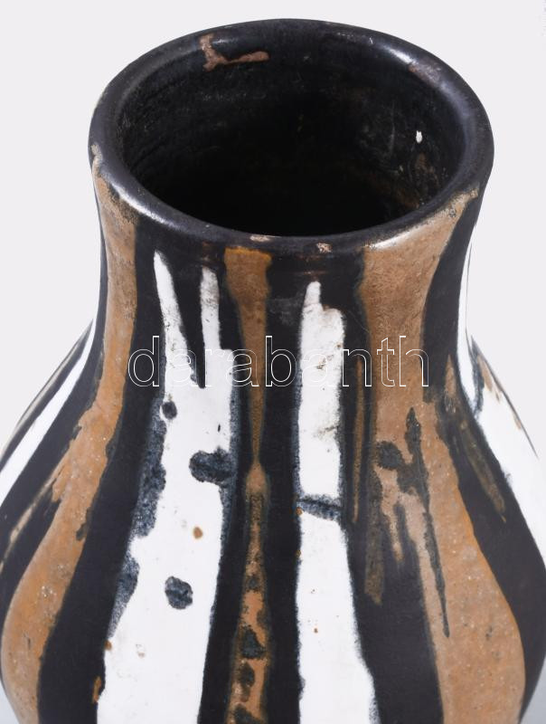 Gorka Lívia (1925-2011): Csíkos váza. Kézzel korongozott, jelzett, hib...