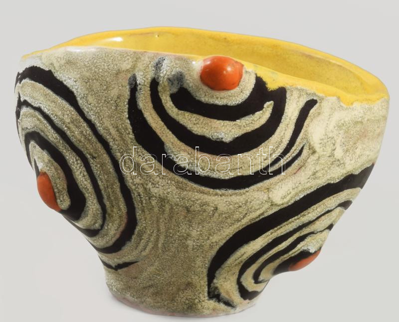 Gorka Lívia (1925-2011): Gombos váza. Jelzett, kis pattogzással és egy erős mázrepedésvonallal, d: 12 cm, m: 8,5 cm