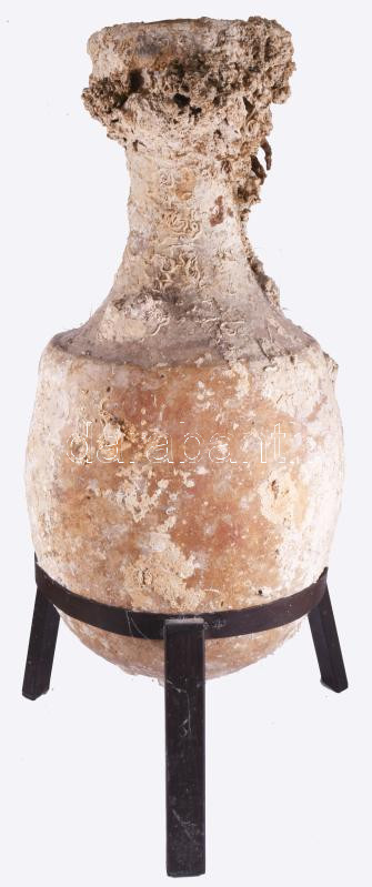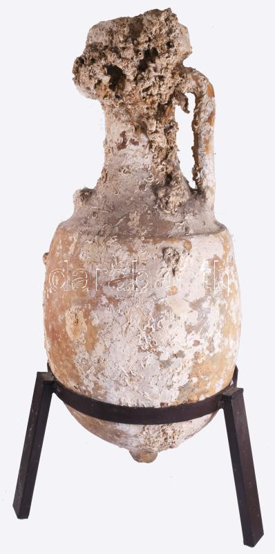 Római terrakotta kereskedői amfóra. Római Birodalom, Kr.e. 1-2. század, terrakotta, egyik füle hiányzik, m: cca 80 cm. Proveniencia: László Károly (1923-2013) műgyűjtő tulajdonából. /// Roman terracotta merchant amphora. Roman Empire, 1st?2nd century BC, terracotta, one handle missing, height approx. 80 cm. Provenance: from the collection of art collector Károly László (1923-2013) /// KIZÁRÓLAG SZEMÉLYES ÁTVÉTEL, NEM POSTÁZZUK / ONLY PERSONAL COLLECTION IN OUR OFFICE!