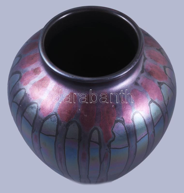 Váza, többszínű irizáló mázakkal festett, sorszámmal jelzett, hibátlan...