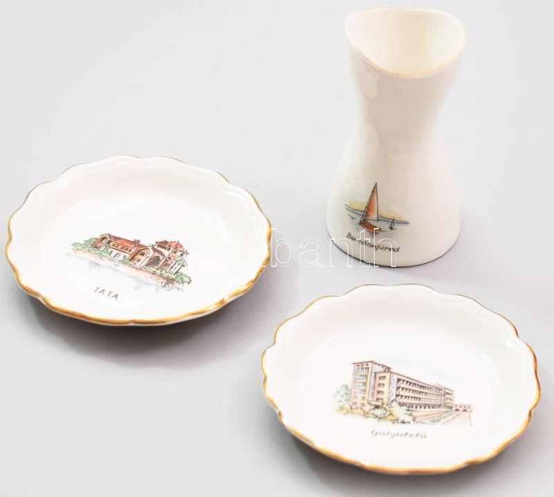 3 db Aquincum porcelán tálka Balatonfüred, Tata, Galyatető és váza d: ...