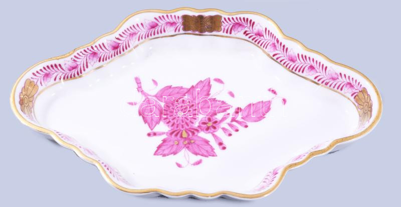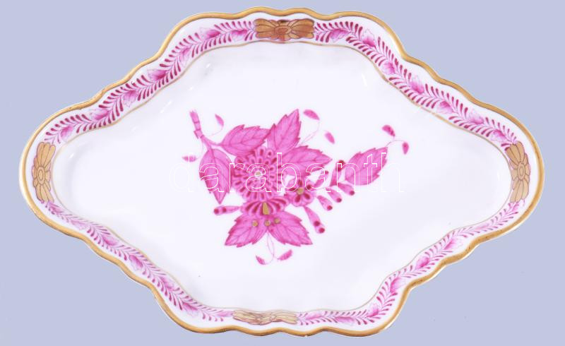 Herendi Apponyi purpur mintás tálka, jelzett, hibátlan, 13x8,5 cm