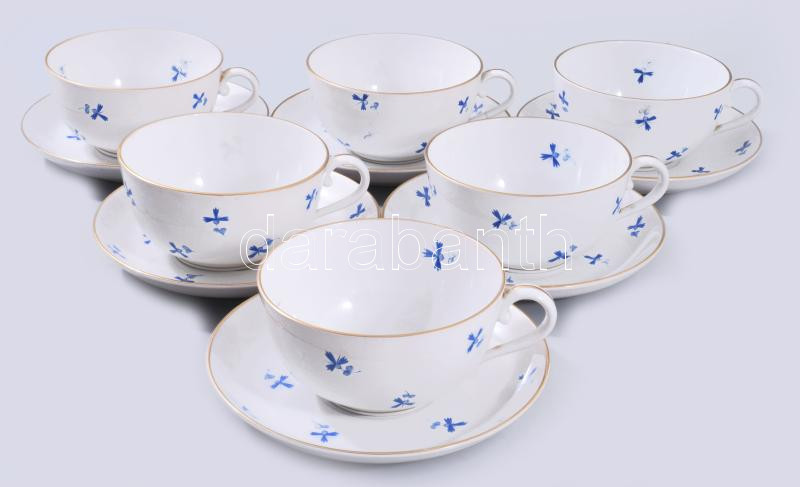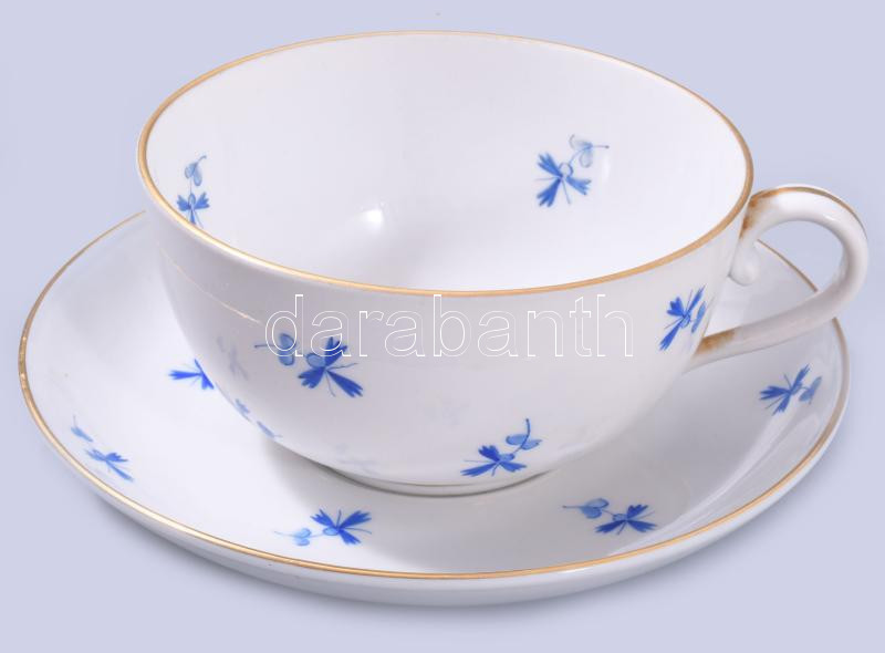 Herendi / Óherendi teás csésze, aljakkal. Kék búzavirág mintás. Kézzel...