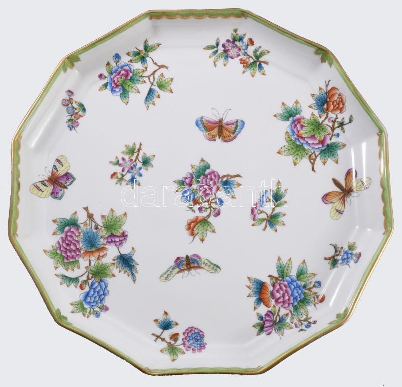 Herendi Viktória mintás tizenkét oldalú nagyméretű asztalközép kínáló. Jelzett, az aranyozáson minimális kopással, d: 37 cm