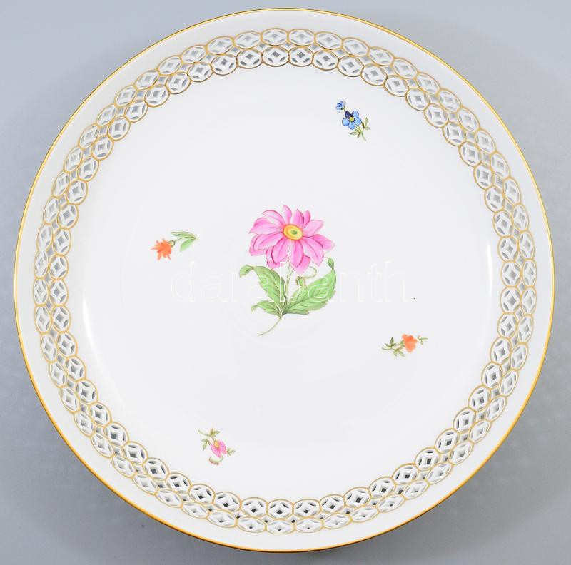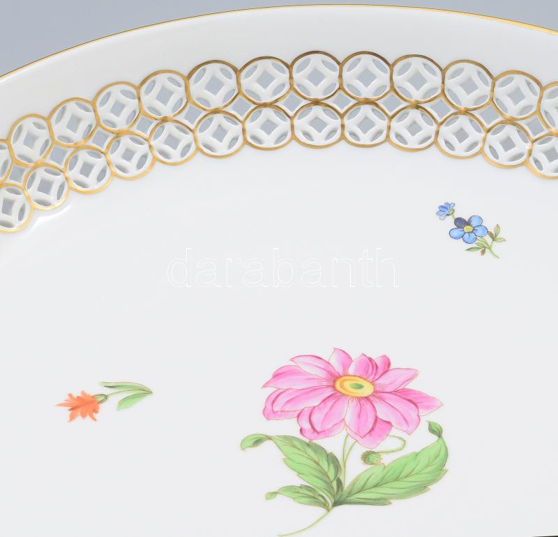 Herendi áttört nagy tál. Kézzel festett, jelzett, hibátlan d: 35 cm