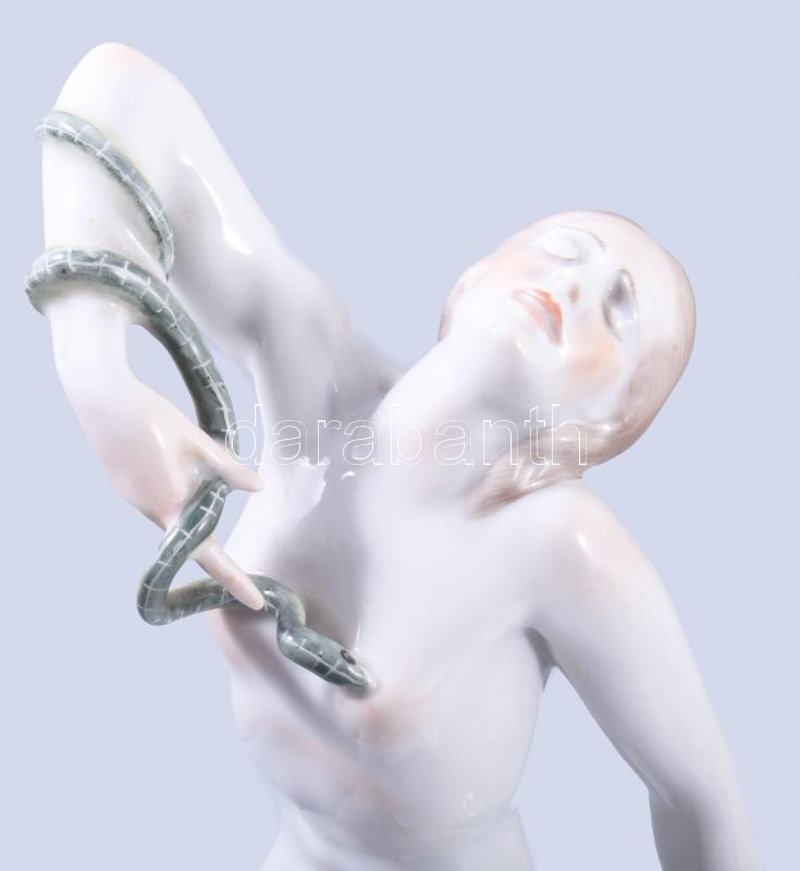 Herendi kisplasztika - Öngyilkos Kleopátra. Terv.: Szilágyi Nagy István (1900-1954). Jelzett, hibátlan, m: 25,5 cm