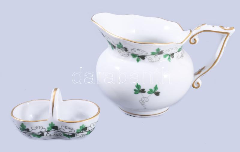 Herendi petrezselyemlevél mintás kiöntő és sóborskínáló, jelzett, hibá...