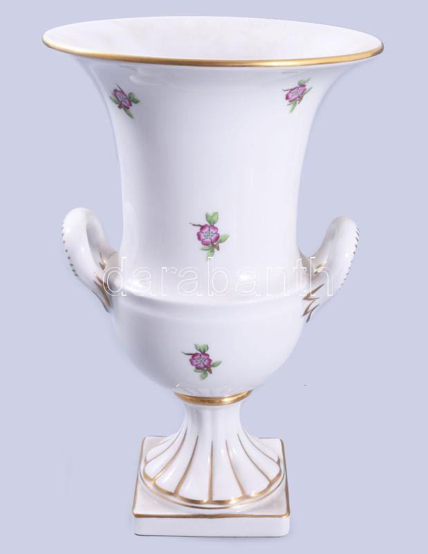 Herendi virágmintás talpas váza, jelzett, 2. oszt., hibátlan, m: 24,5 ...