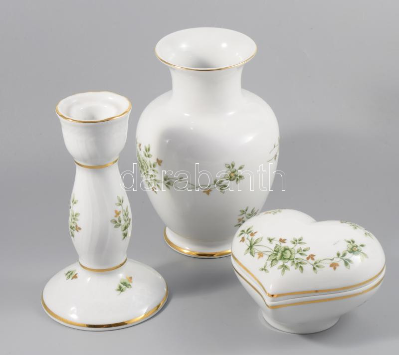 Hollóházi 3 részes Erika mintás asztali szett, jelzett, hibátlan, m: 15 cm