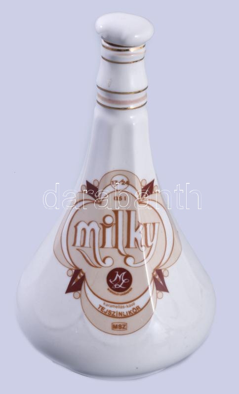 Hollóházi Milky tejszínlikőrös porcelán palack. Matricás, jelzett, hib...