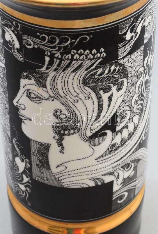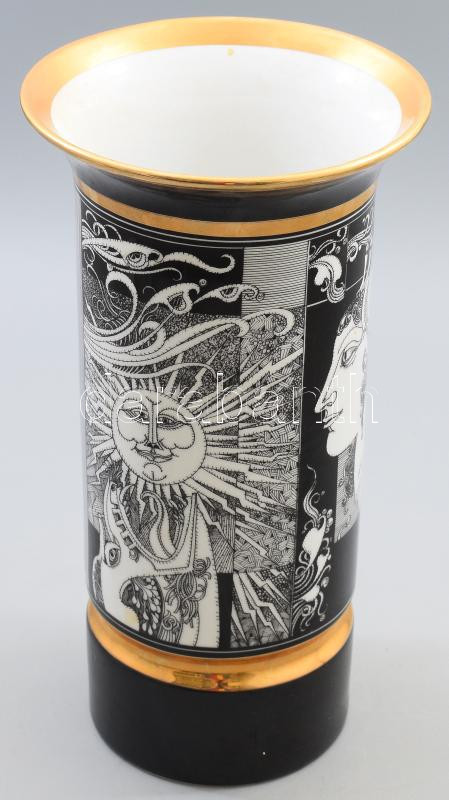 Hollóházi Szász Endre által tervezett dekorral díszített porcelán váza...