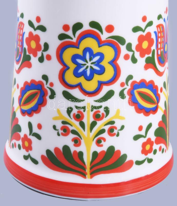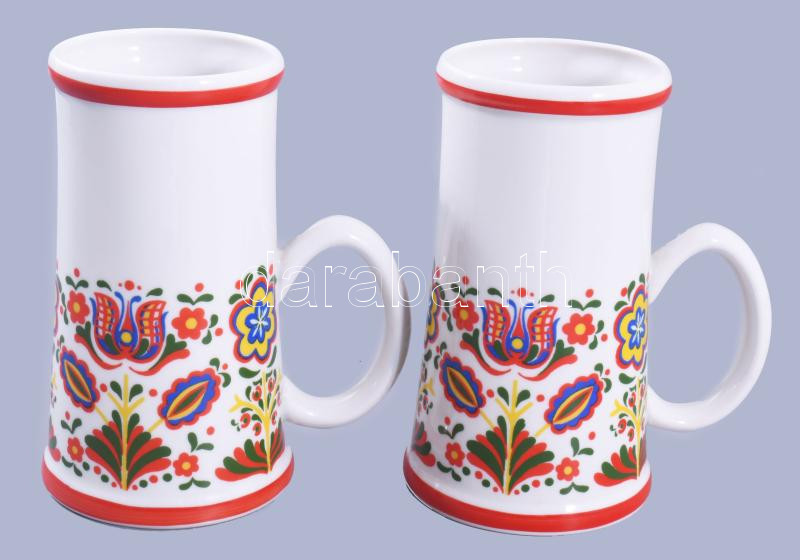 Hollóházi népi mintás bögre pár, jelzett, hibátlan, m: 14,5 cm