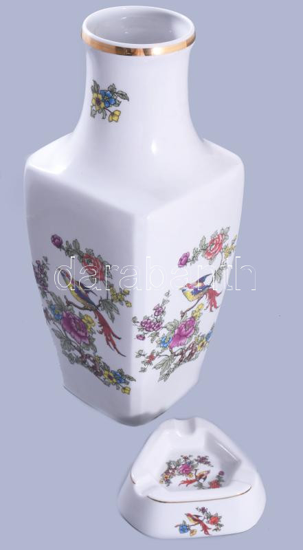 Hollóházi paradicsommadár mintás váza m: 36 cm + hamuzó.