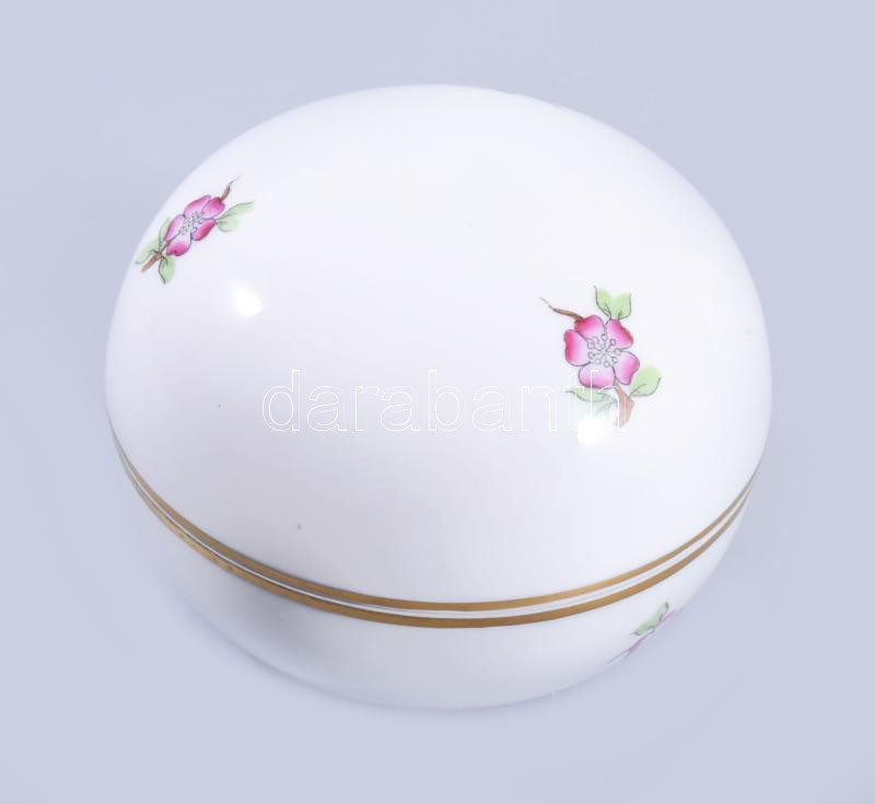 Hollóházi virágmintás bonbonier, jelzett, hibátlan, d: 9,5 cm