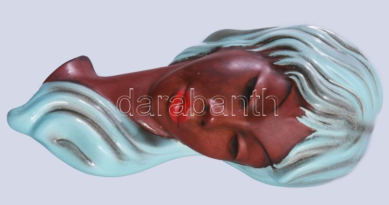 Jelzett német art deco stílusú maszk falidísz, kopással, h: 27 cm
