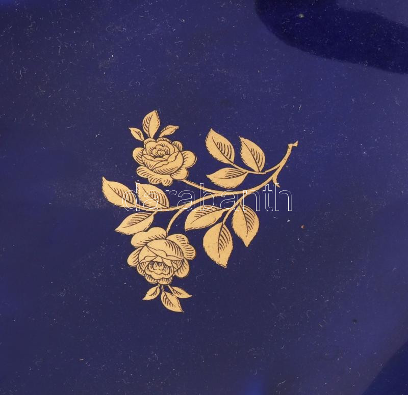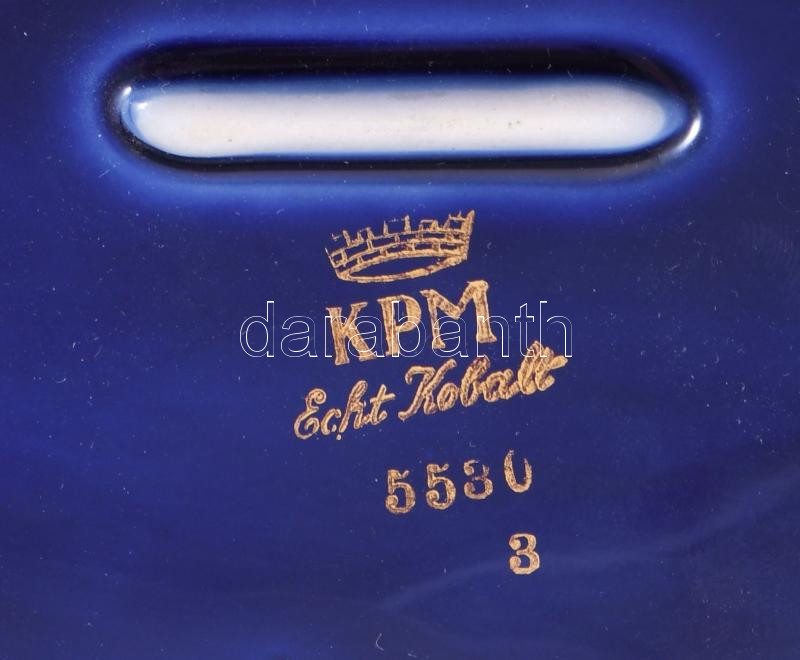 KPM kobaltszínű levél alakú kínáló, jelzett, kis kopással, 25x19 cm