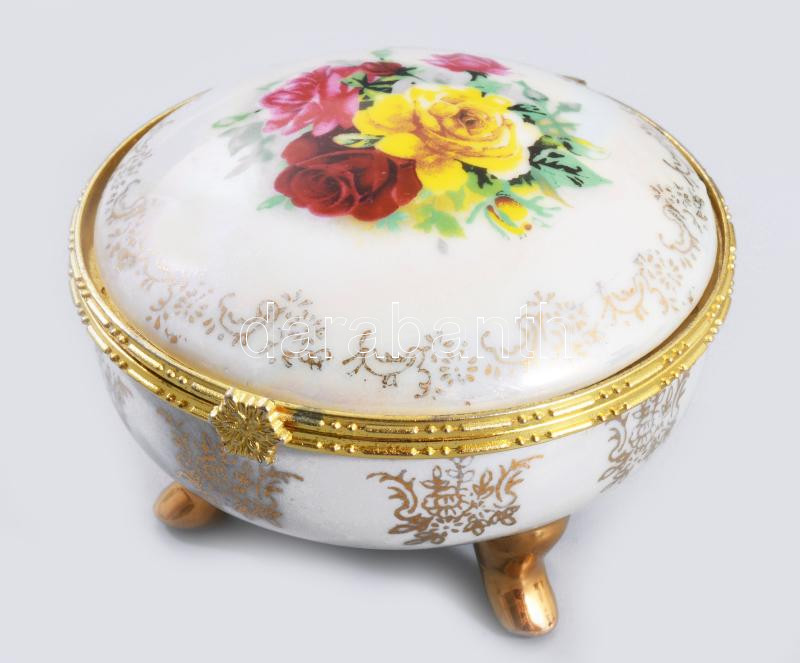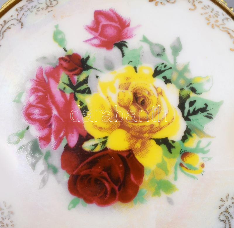 Rózsamintás porcelán ékszeres edény, jelzés nélkül, d: 8 cm