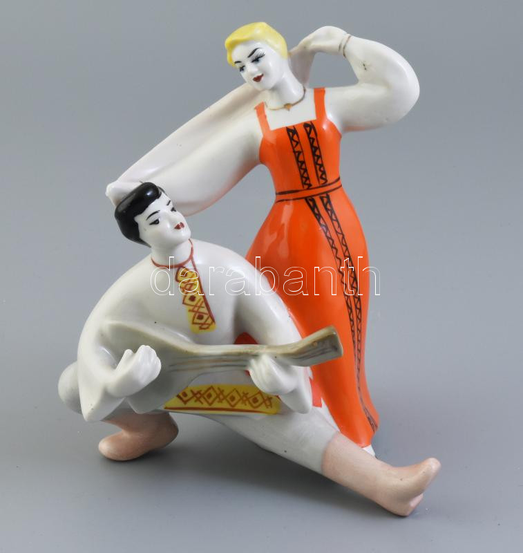 Ukrán, Polonne porcelán figura, kopásokkal, jelzett, m: 16,5 cm