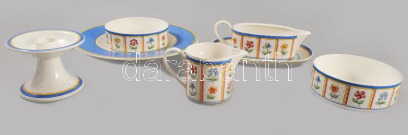 Villeroy & Boch "Julie" összeállítás: kiöntő, szószkiöntő alátéttel, gyertyatartó, 2 darab mogyorós tál, mélytányér. Jelzett, hibátlan, d: 24 cm alatt