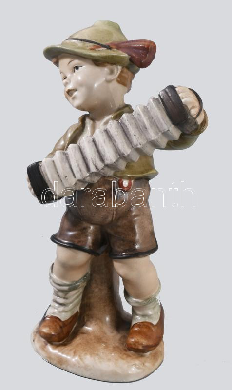 Wagner & Apel Bertram nagyobb méretű harmonikázó fiú. Jelzett, kézzel festett, hibátlan, m: 19 cm