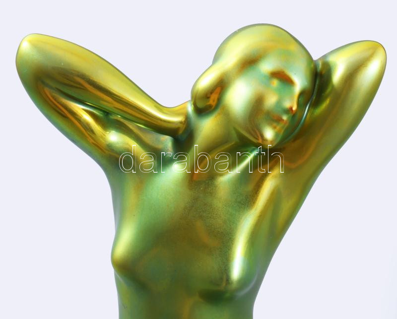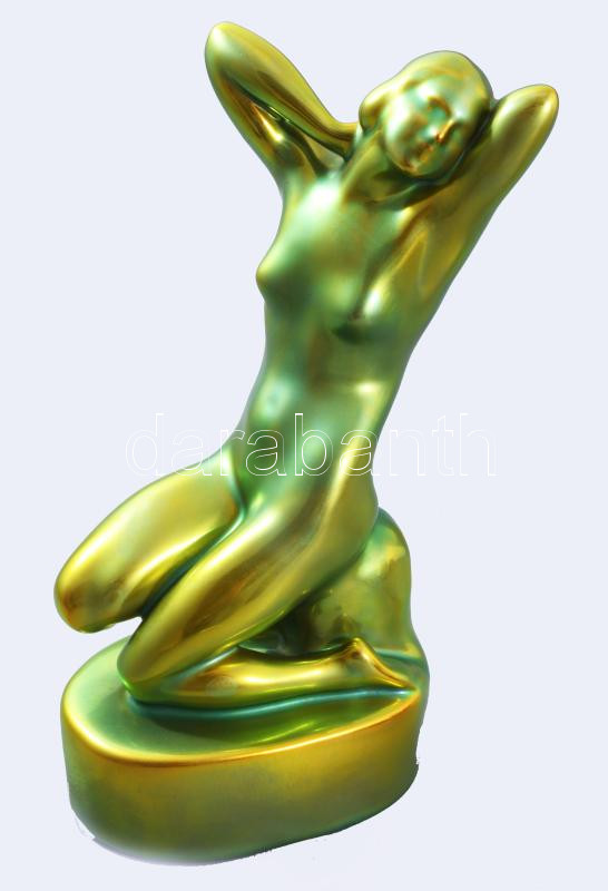 Zsolnay kisplasztika - Vágyódás. Selyemfényű eozin mázakkal bevont finomfajansz, jelzett, hibátlan, m: 23 cm