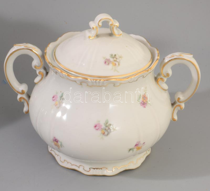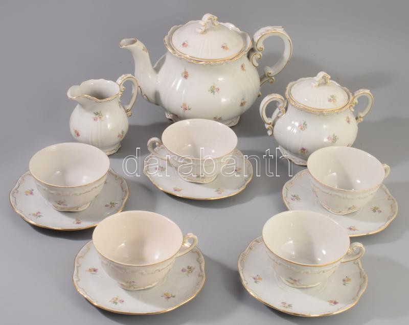 Zsolnay tollazott szélű 5 személyes kávés készlet, jelzett, kis kopáss...