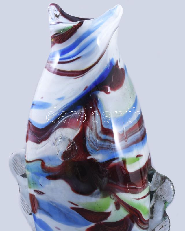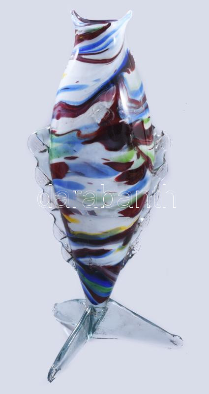 Anyagában színezett üveghal, hibátlan, h: 37 cm