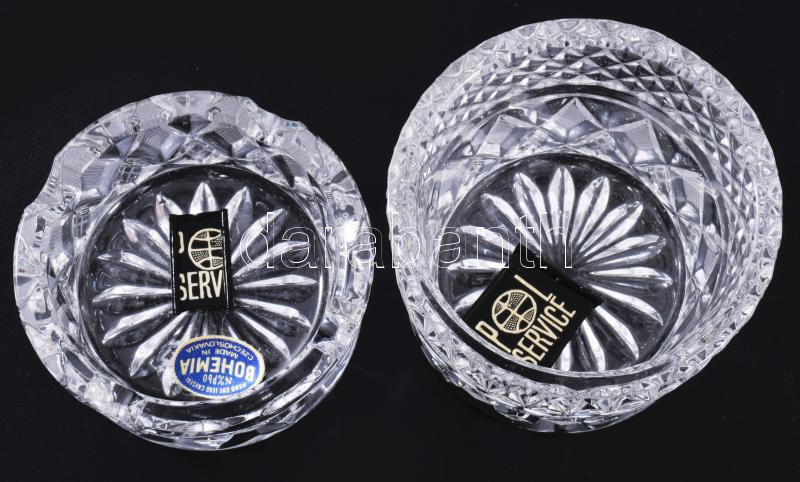 Bohemia ólomkristály dohányzó szett, hamuzó és cigarettatartó, jelzett...