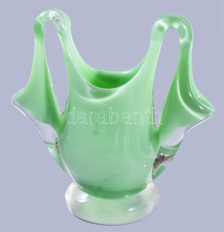 Díszváza, anyagában színezett többrétegű hutaüveg, hibátlan 12 cm