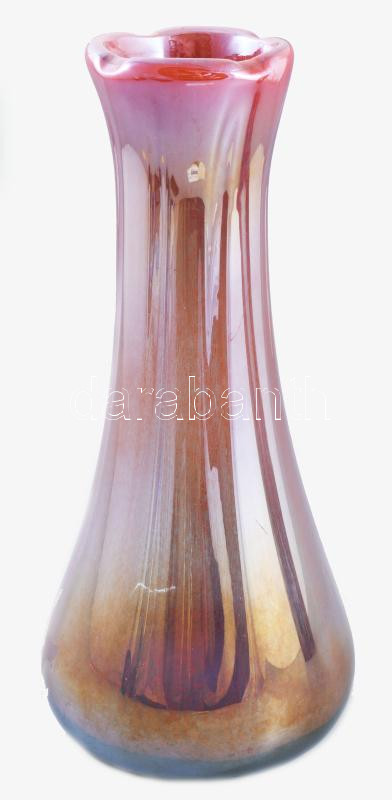 Fémlüsztere felületű szakított üveg váza, jelzés nélkül, hibátlan, m: ...
