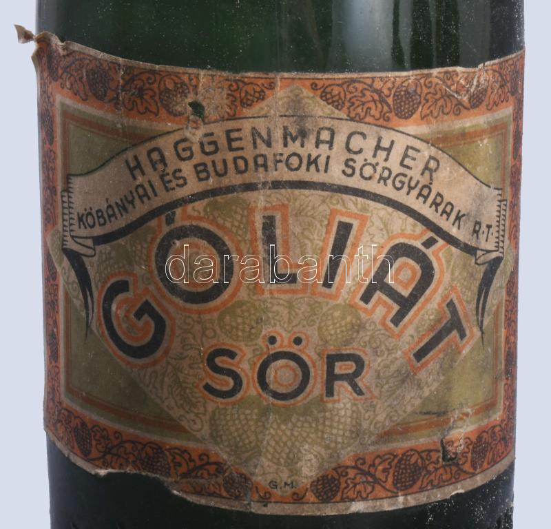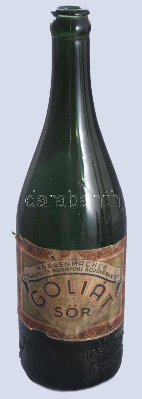 Haggenmacher Góliát sör üveg, címkével, m: 28,5 cm
