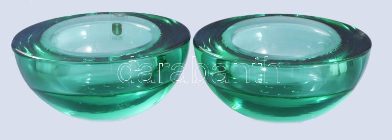 Iittala Finland zöld designer mécsestartó pár, anyagában színezett, címkével jelzett, hibátlan, d: 9 cm