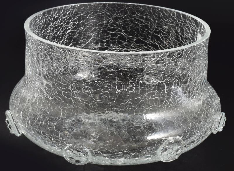Krakléüveg asztalközép kínáló bütykös díszítéssel. Jelzés nélkül, hibátlan, d: 21 cm, m: 11,5 cm