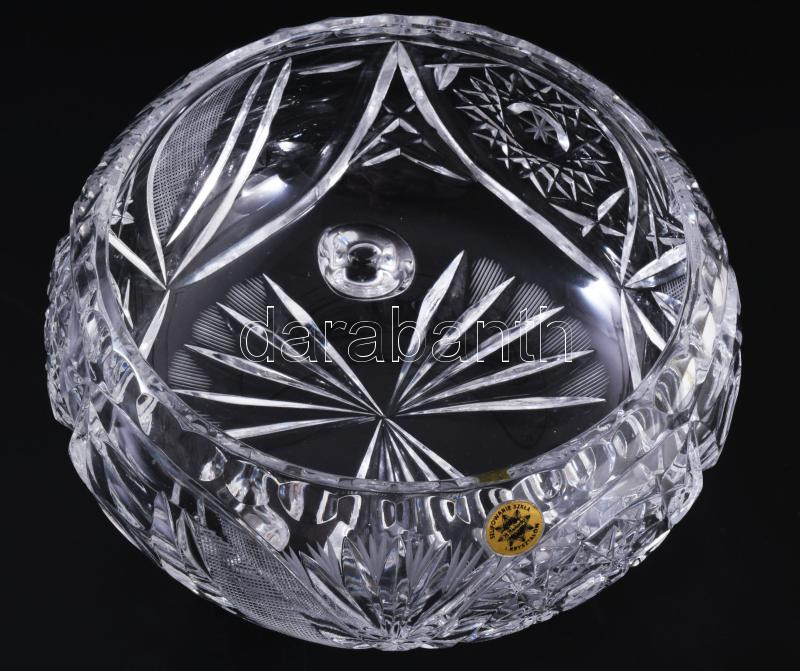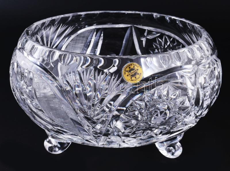 Kristály kínáló 3 lábon, címkével jelzett, d: 16 cm, m: 9,5 cm