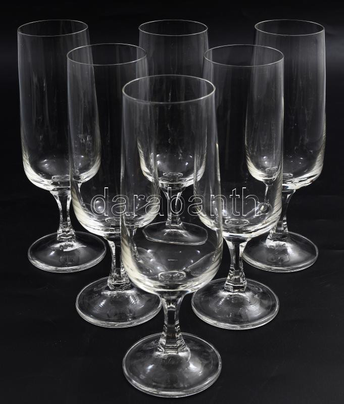 Kristály pezsgős pohár garnitúra, 6 darab, hibátlan, m: 16 cm