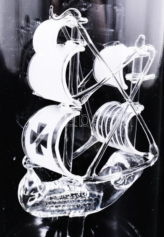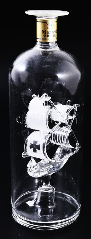 Mazzetti dísz italos üveg, belül hajó formával, hibátlan, m: 18,5 cm