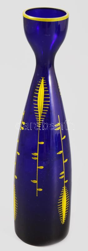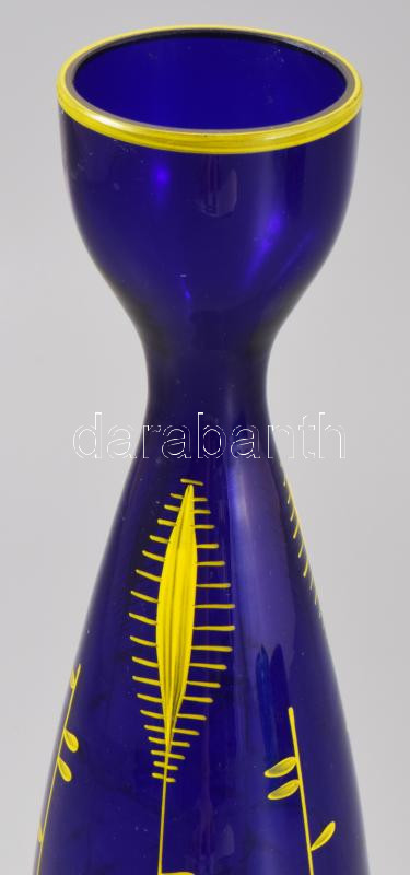Parádi királykék váza, kézi festéssel, hibátlan, m: 25,5 cm